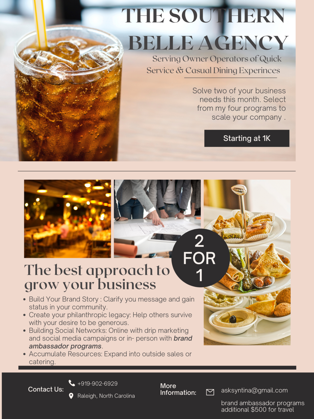 Do not miss this two for one special. Solve two of your business needs this month for the price of one solution. Select from my four programs to scale your company .